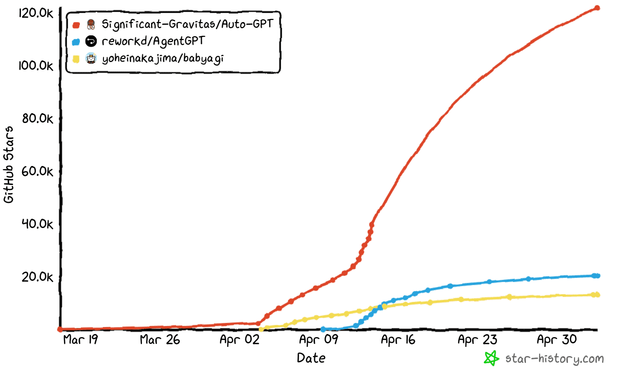 最近一个名为 Auto-GPT 的开源项目走进公众视野,Github上一经上线,标星数直线飙升,短短一个月就超越了曾经的热点比特币,足见其火爆。特斯拉前 AI 总监、刚回归 OpenAI 的 Andrej Karpathy 也对其大加赞赏:「AutoGPT 是 prompt 工程的下一个前沿。」